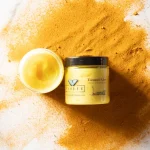 Ingredients: Organic cane sugar, fractionated coconut oil, shea butter,sweet almond oil, vegetable glycerine, stearic acid, cetearyl alcohol, ceteareth-20, turmeric, jojobawax, turmeric essential oil, ginger essential oil, tocopherol t-5